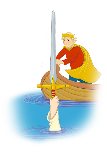 Cafodd Arthur ei goroni'n Frenin a bu Myrddin, y dewin yn helpu'r Brenin Arthur i reoli Prydain. Aeth ag ef at lyn hud a lledrith. Roedd ffrind Myrddin, 'Iarlles y Llyn' yn byw yno o dan y dŵr. Rhoddodd hi gleddyf hud i Arthur o'r enw Caledfwlch. Bu sawl brwydr, ond gyda chymorth Caledfwlch enillodd Arthur bob un ohonyn nhw.