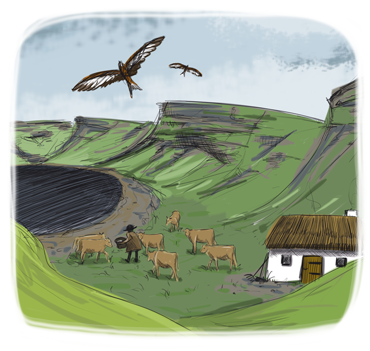 Ar ddiwrnod braf o haf doedd dim yn well ganddo nag eistedd ger y llyn, yn breuddwydio wrth i'r gwartheg bori gweiriau'r mynydd. Byddai'n gwylio'r barcutiaid coch yn hedfan uwch ei ben, gan wibio dros grib y mynydd wrth iddyn nhw hela.