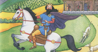 About 1500 years ago, there was a kingdom called Cantre's Gwaelod in what is now Cardigan Bay. It had sixteen villages with very good farmland. The villagers used the seaweed as a fertiliser. The king was Gwyddno Garanhir. He was also called 'Gwyddno Longshanks' because he was so tall. His great fort or palace was seven miles out to sea, west of Aberystwyth. He protected his kingdom from the sea by building a huge dyke or wall with floodgates. These were opened at low tide to drain the water from the land and closed when the tide returned. The king's friend, called Seithennin, was in charge of watching over the gates.