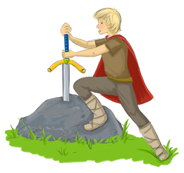 Years later when Arthur was on his way to his first tournament (where knights practiced fighting) with his foster-brother, Kay, he got into trouble because he had forgotten Kay’s sword. Arthur saw a sword in the stone and pulled it out easily. Arthur gave the sword to Kay. Kay noticed the message and everyone wanted to know who had pulled the sword from the stone. At first, no-one believed that Arthur had done it. But he repeated what he had done. Everyone was amazed!